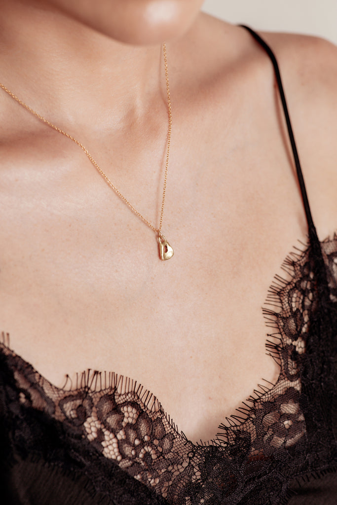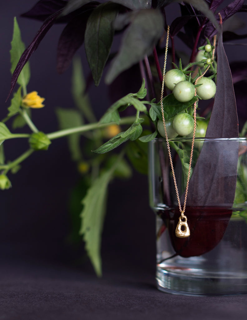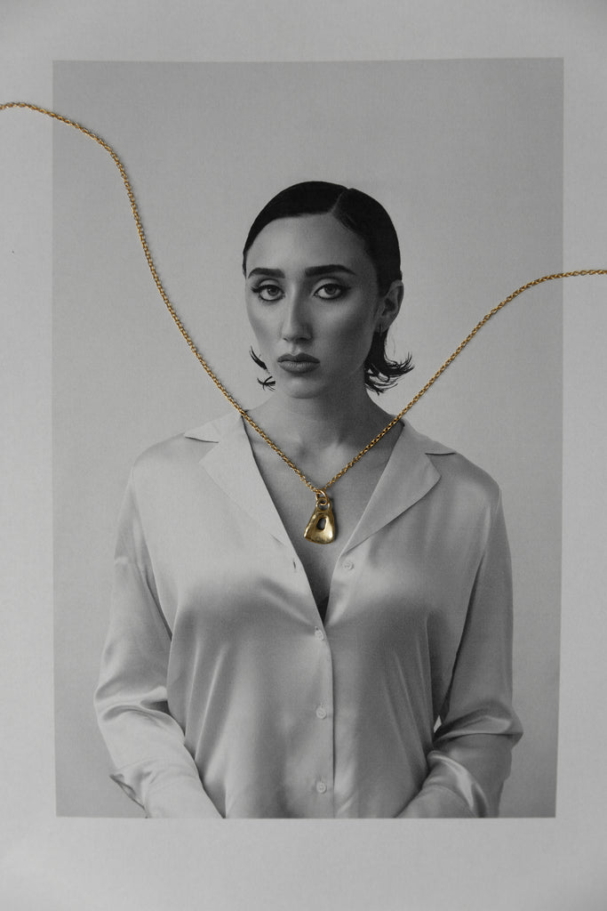A small study in shape and substance. The Forma Pendant embodies the sculptural core of the Duea Collection — a tactile golden abstract form that feels both ancient and new. Its softened edges and open center celebrate the opportunity to embolden a design with the use of a little negative space.