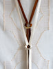 We designed this combo for movement, layering, and play. The Cassia Ring transforms the Tassel Tie from leather necklace, to bolo-style adornment, to a wrap belt or body tie, adapting effortlessly to your mood and moment. It also stacks with other stacking rings like a champ