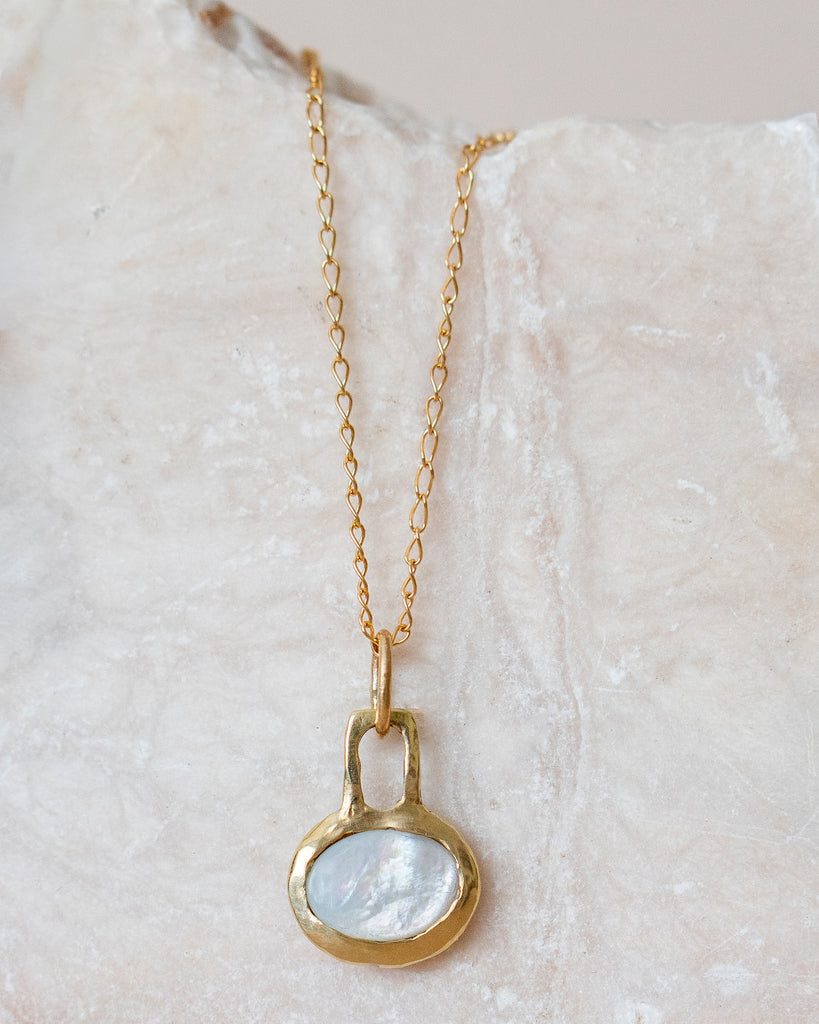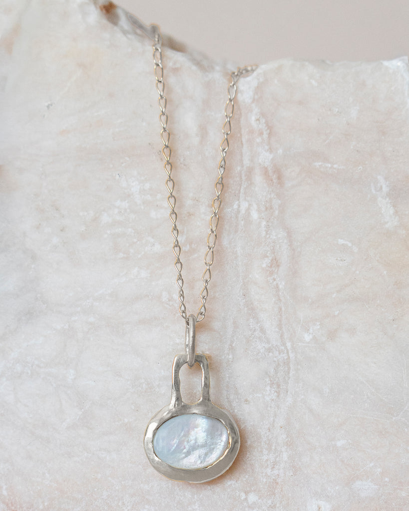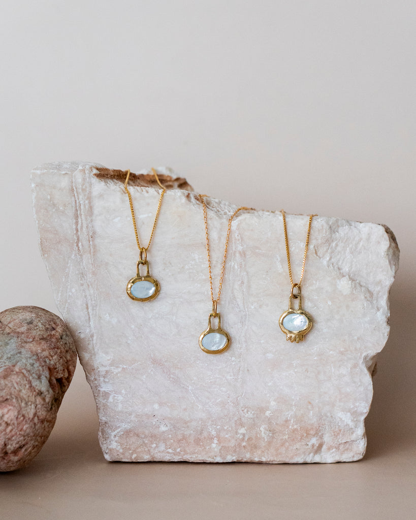 Mother of Pearl is beautiful. Protecting, nurturing, and beautifully fitting for the season.